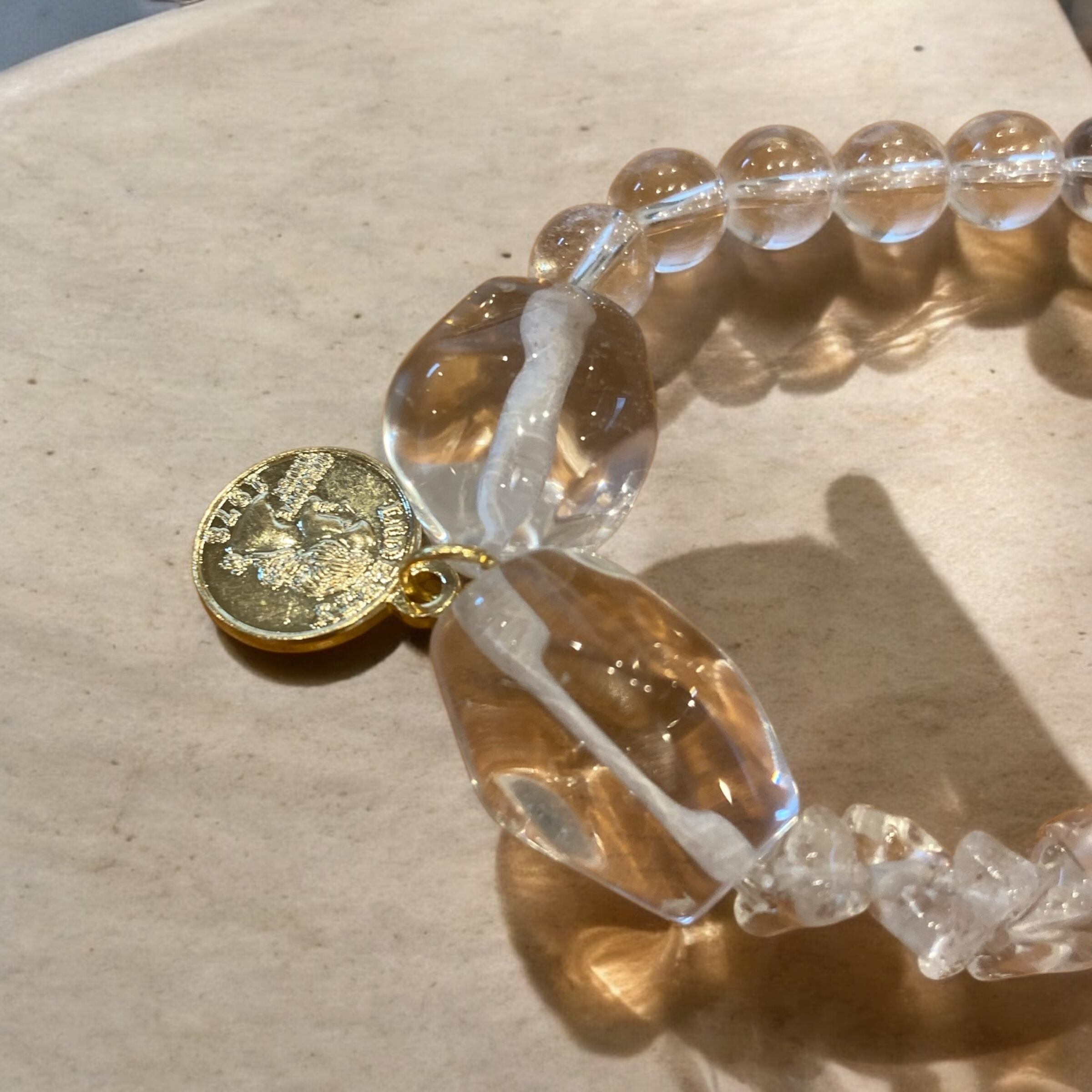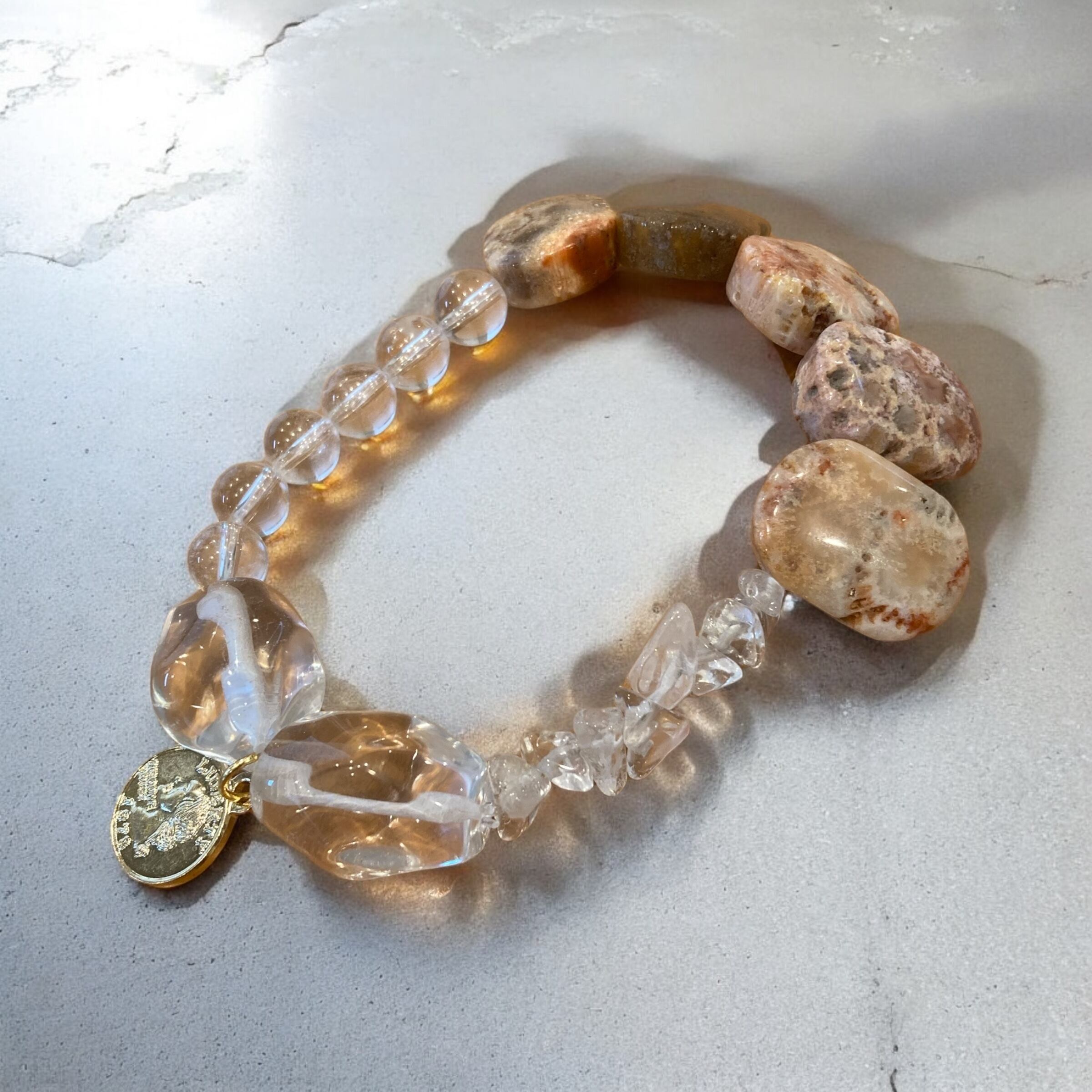 multicolore bracelet(コーラルフォッシル×水晶クリスタル)