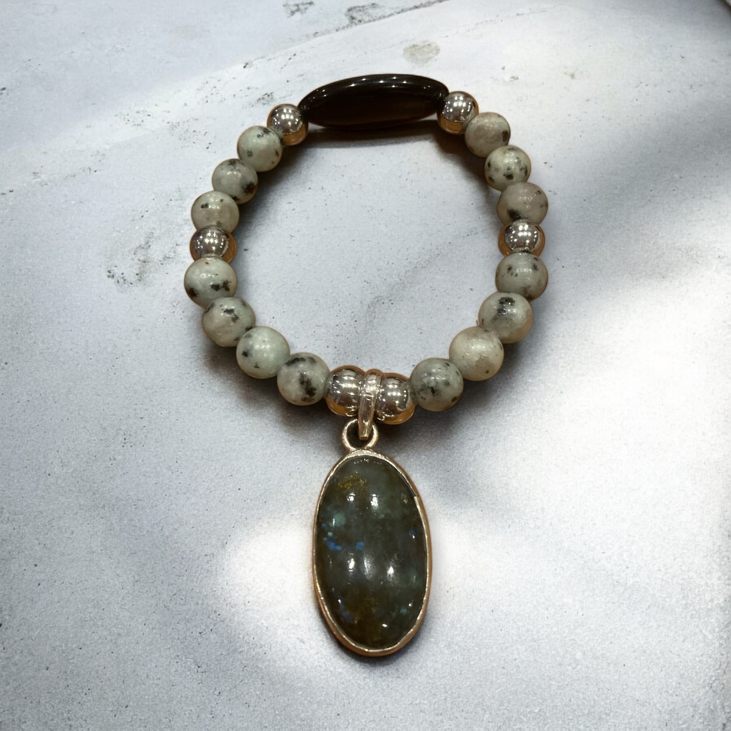 multicolore bracelet(ラブラドライト×キウイクォーツ×オニキス)